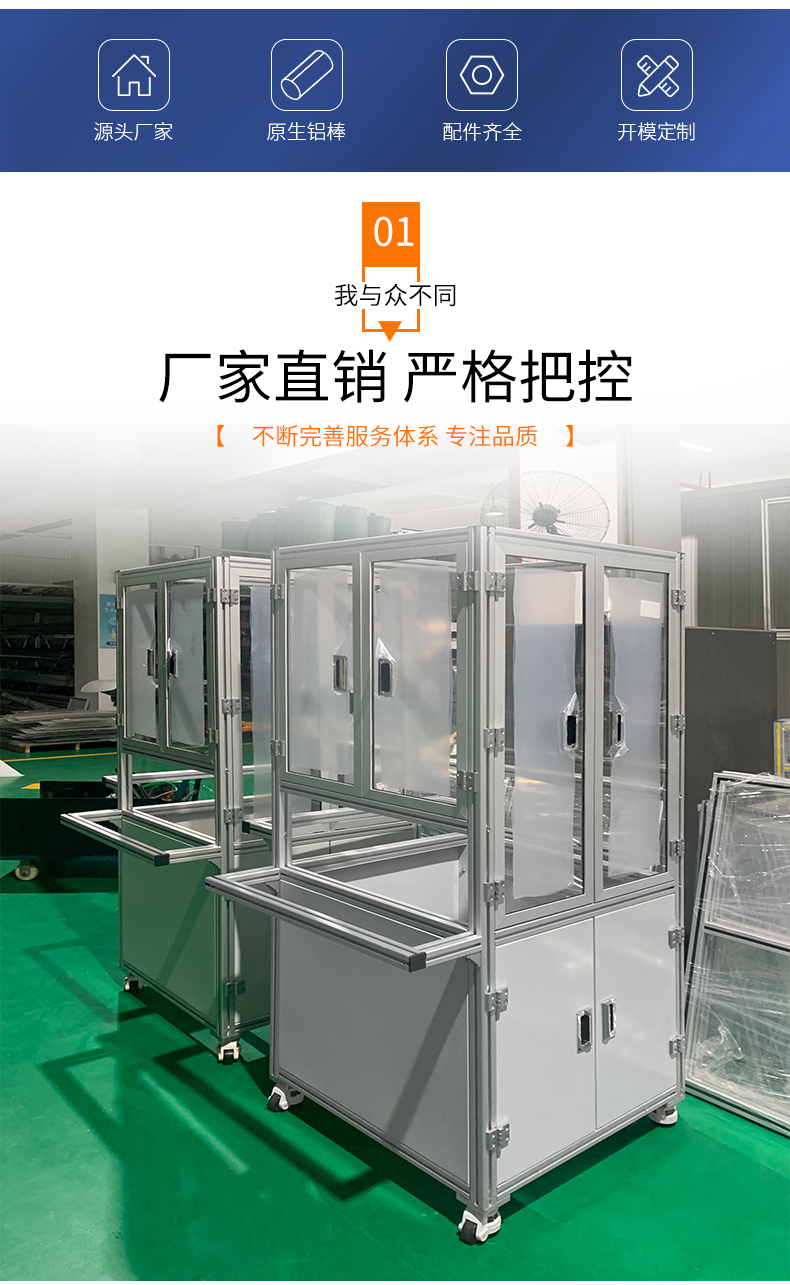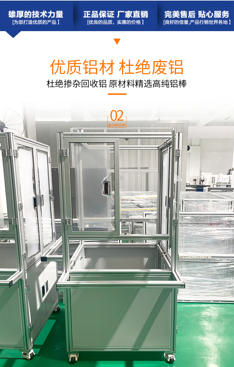 工業(yè)鋁型材材質(zhì)100不含廢鋁,擠壓設(shè)備先進,技術(shù)精良。沒有擠壓痕,表面陽極氧化膜厚度》12um,外觀漂亮、耐臟耐磨、易清洗。