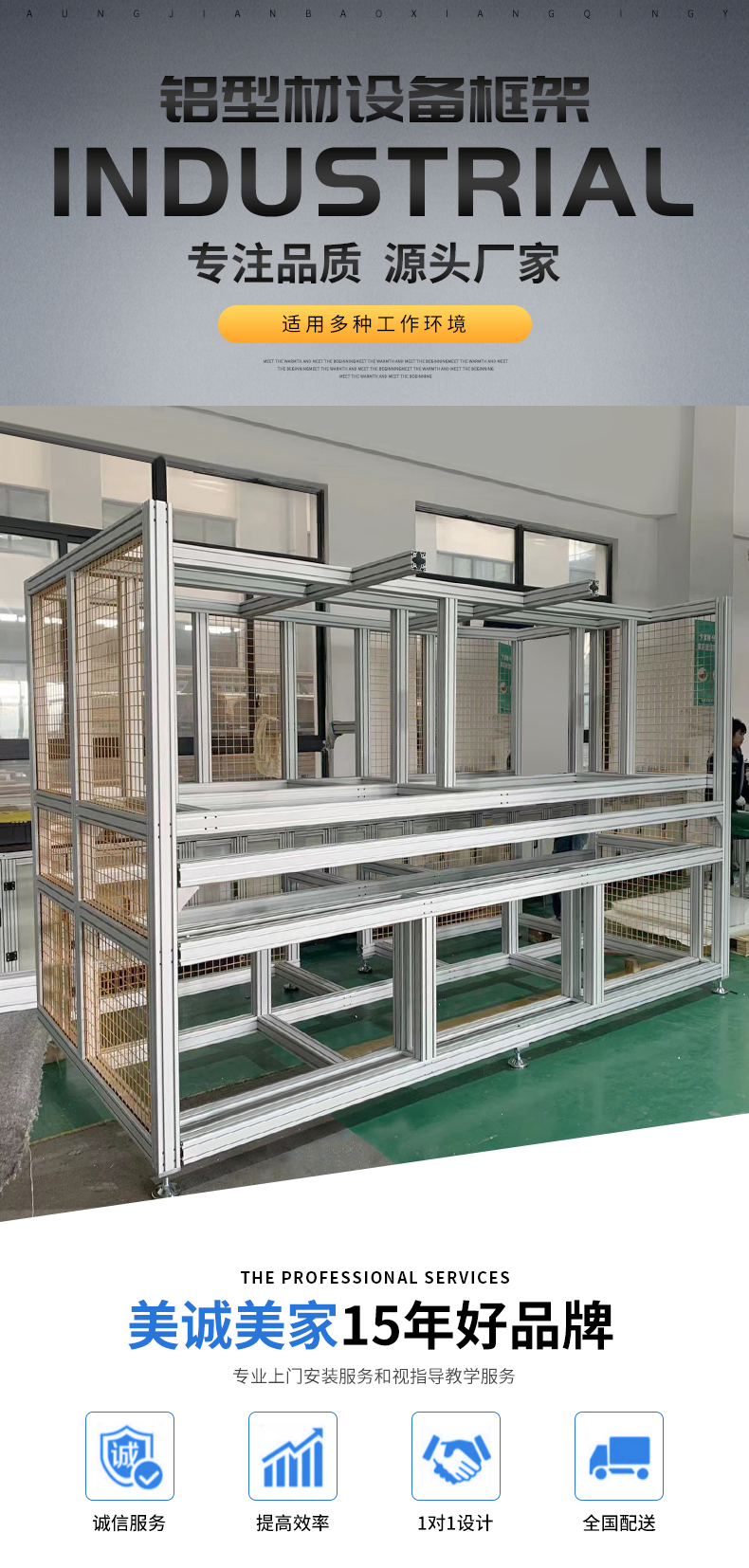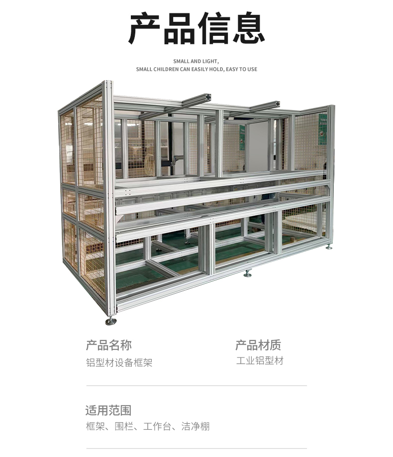 鋁型材設(shè)備框架由專用工業(yè)鋁型材配件連接而組成,可以根據(jù)客戶的不同需求選材,功能