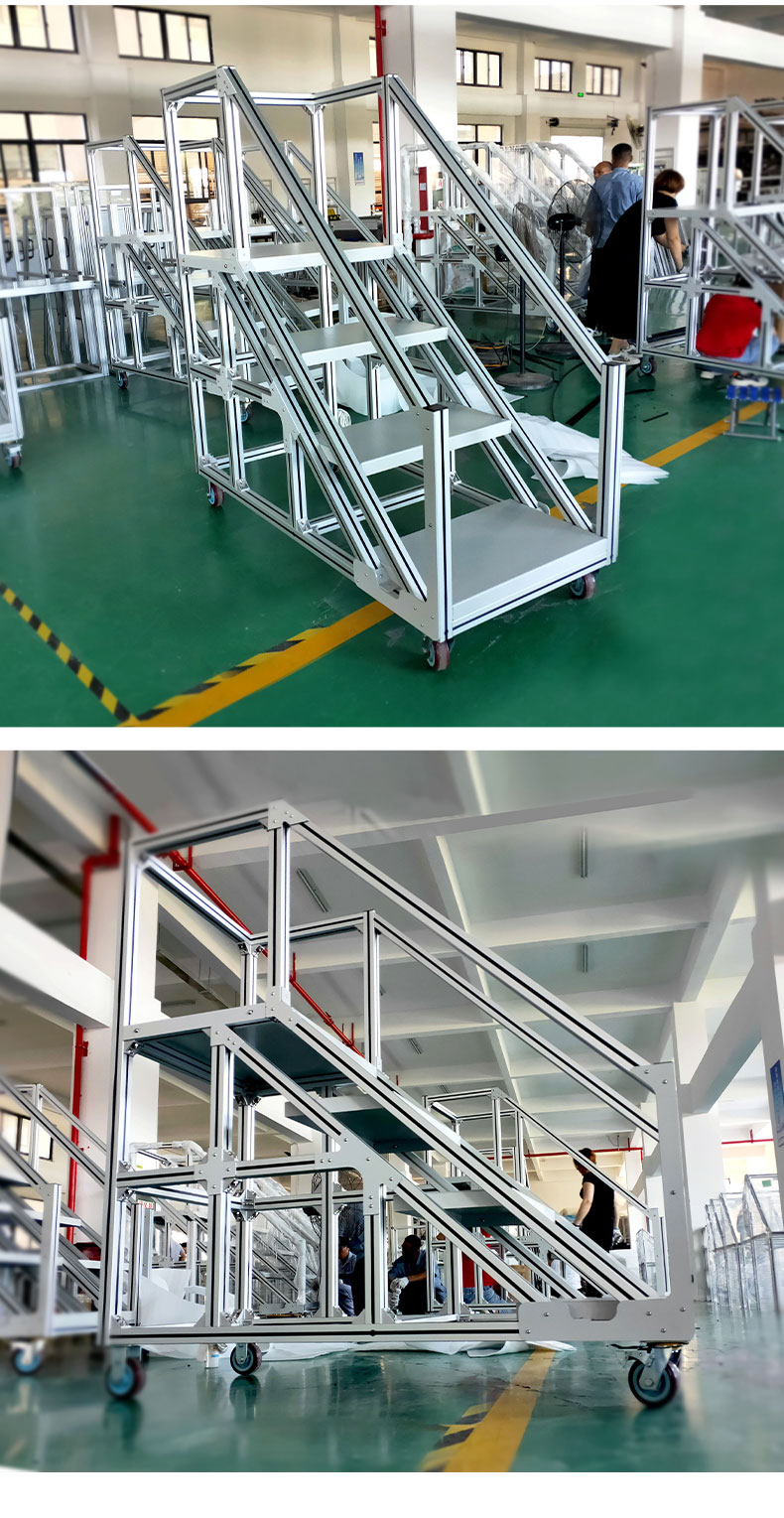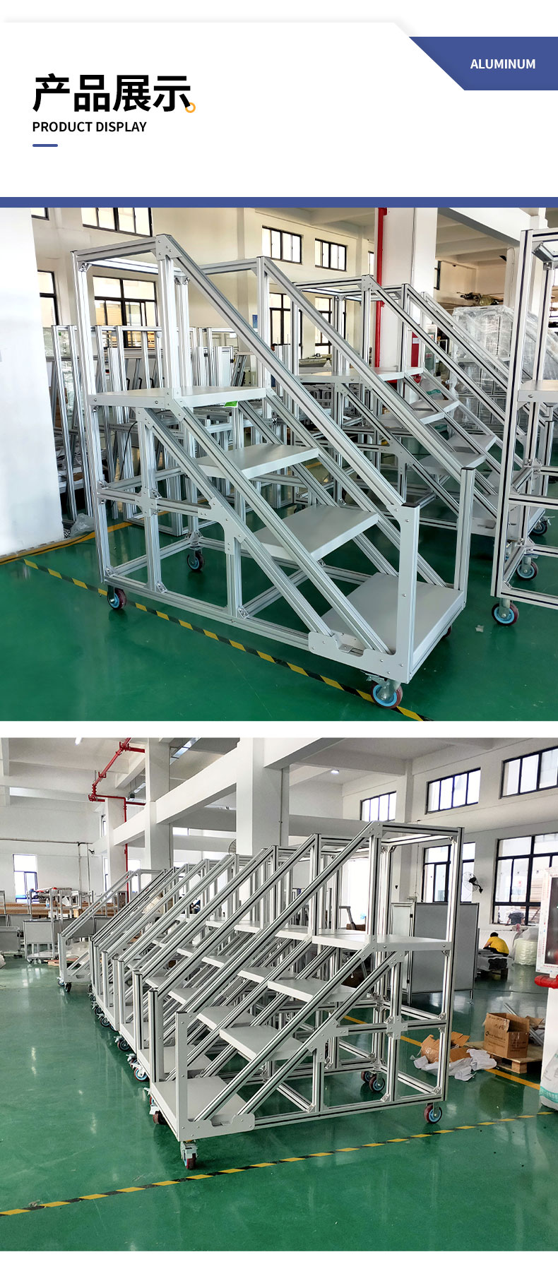 踏步工業(yè)扶梯由專用工業(yè)鋁型材作為框架,其需求根據(jù)客戶制定進(jìn)行免費(fèi)設(shè)計、切割加工,