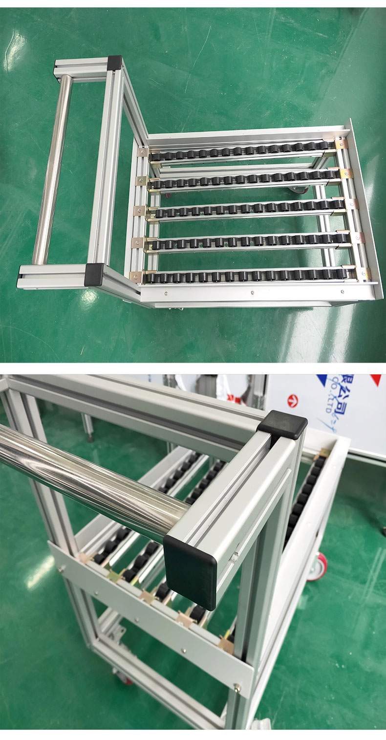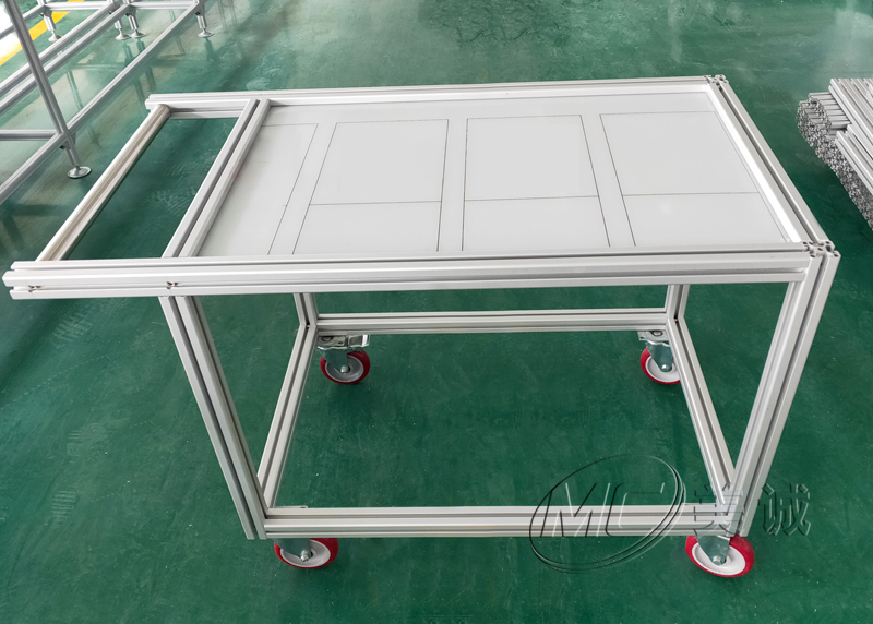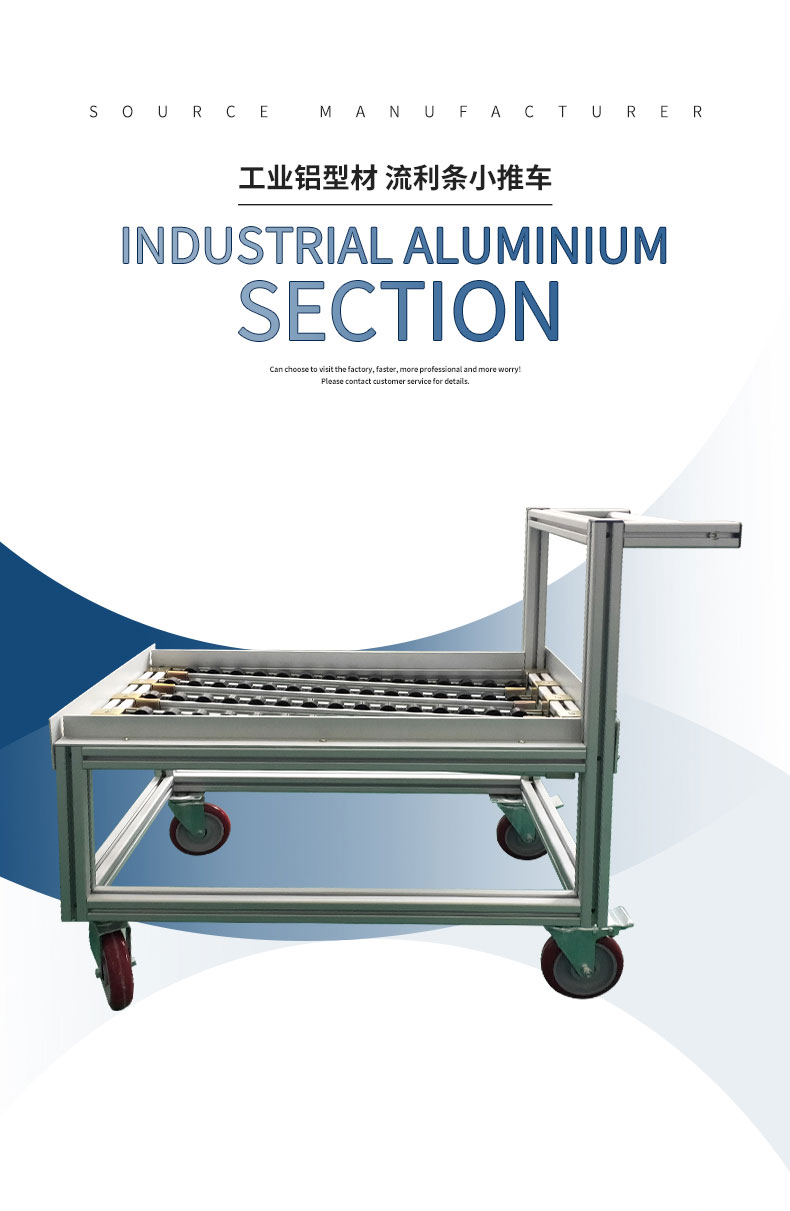 鋁型材小推車是用工業(yè)鋁型材和鋁型材相關配件配套組裝而成的可以運送物料的一種車間用