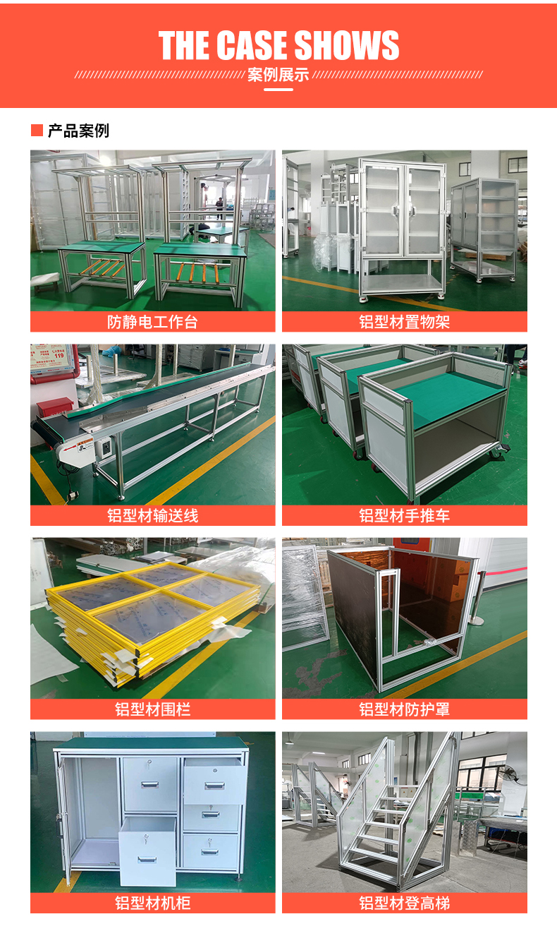 廣泛應(yīng)用于自動(dòng)化行業(yè)、汽車制造行業(yè)、電子行業(yè)及潔凈工程和高校科研等領(lǐng)域,配套專用螺栓螺母、強(qiáng)力角件以及相關(guān)專用連接件進(jìn)行組裝成品。
