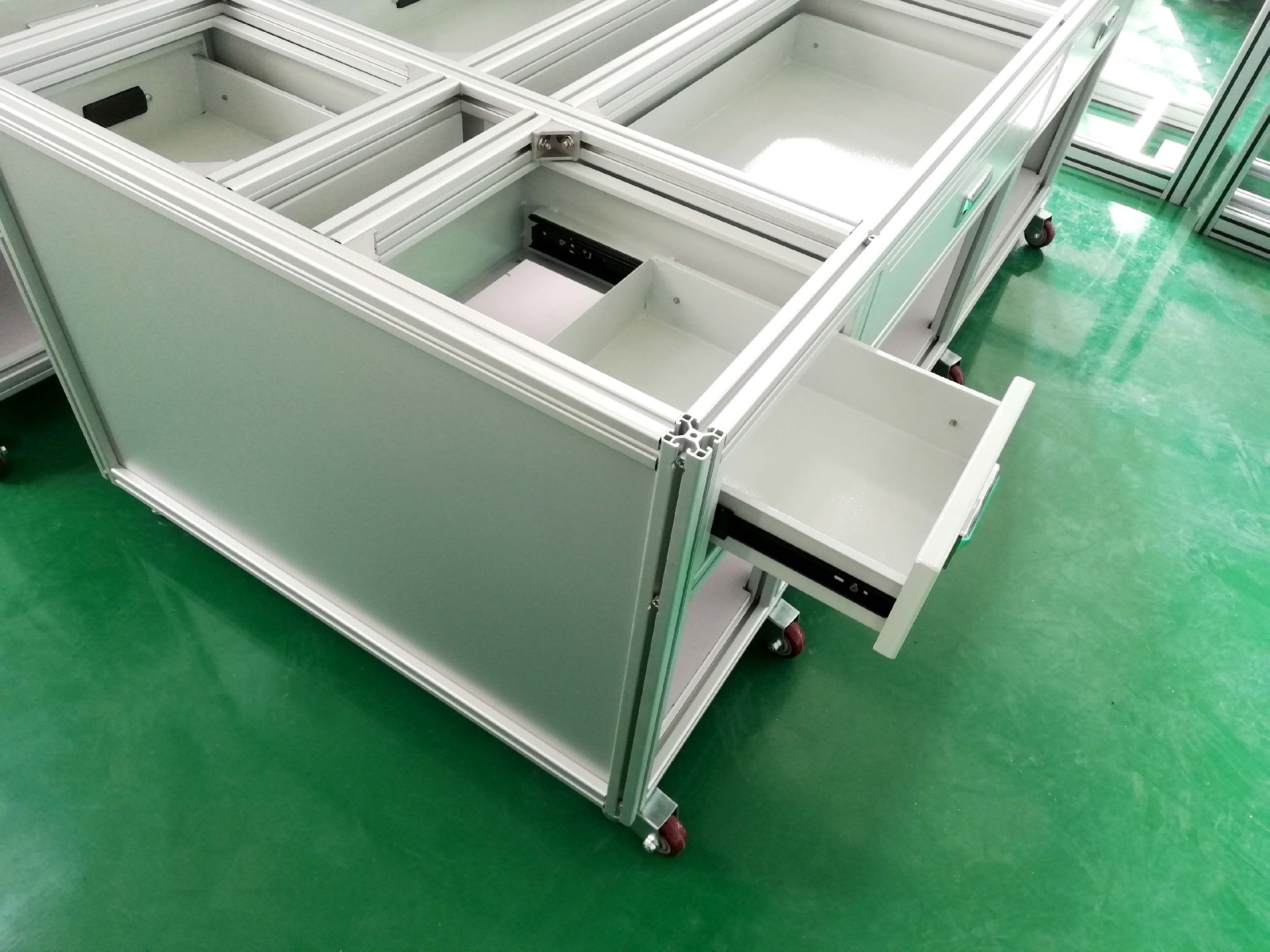 鋁型材抽屜式工作臺解決了企業(yè)生產(chǎn)時產(chǎn)品分類的問題,它有助于節(jié)省空間,運用多層抽屜