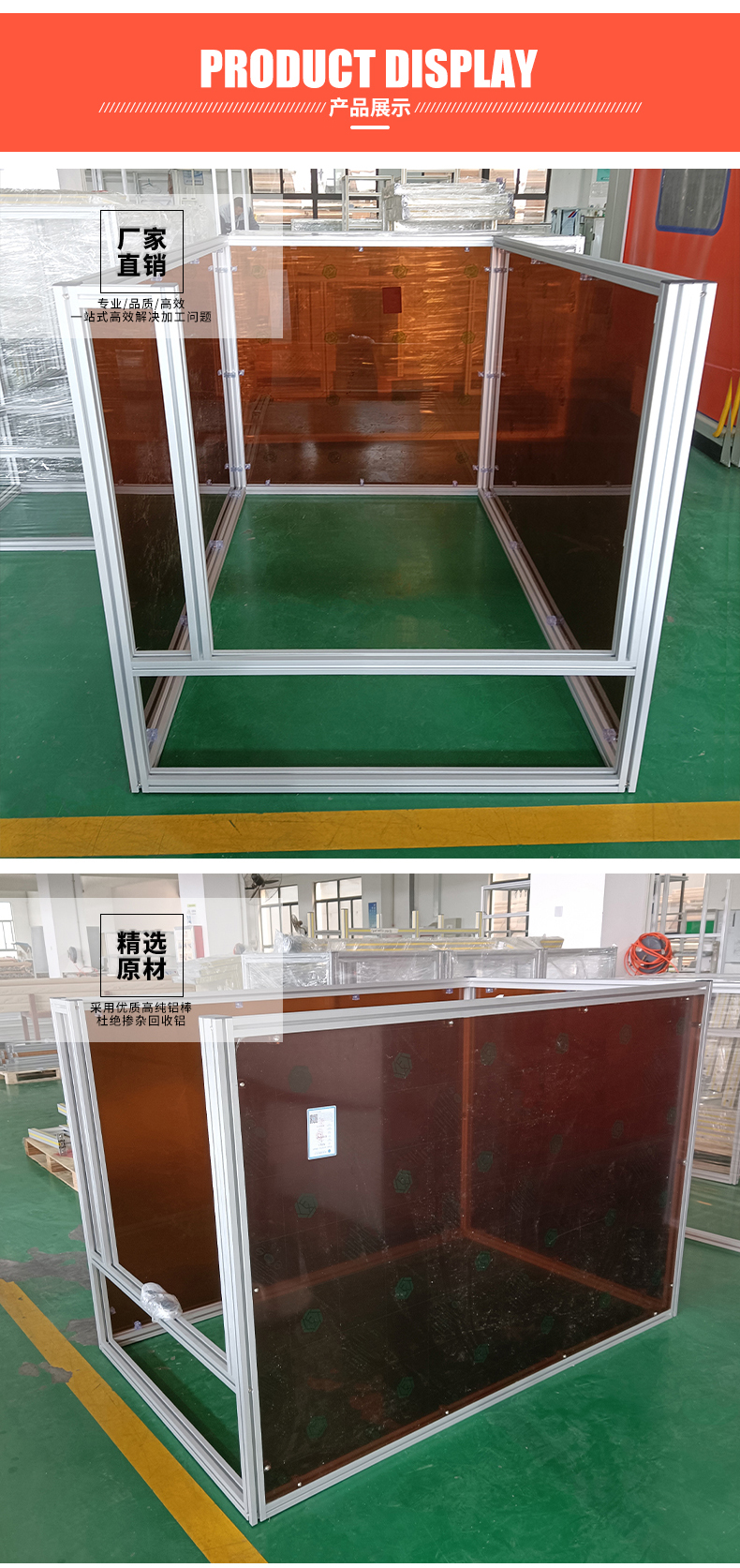 工業(yè)鋁型材材質(zhì)100不含廢鋁,擠壓設(shè)備先進,技術(shù)精良。沒有擠壓痕,表面陽極氧化膜厚度》12um,外觀漂亮、耐臟耐磨、易清洗。