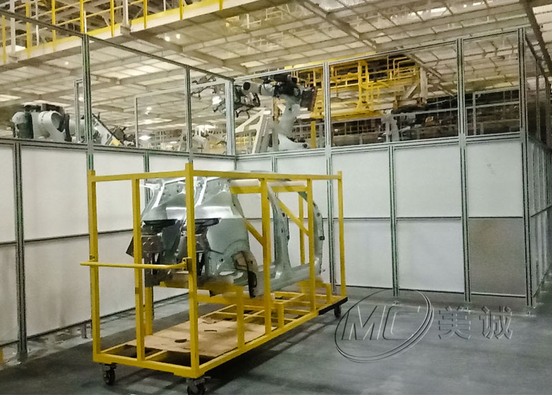 機(jī)器人工作站圍欄是在正常生產(chǎn)之外設(shè)置防護(hù)措施,并部分或全部設(shè)置鋁防護(hù)圍欄,以確保
