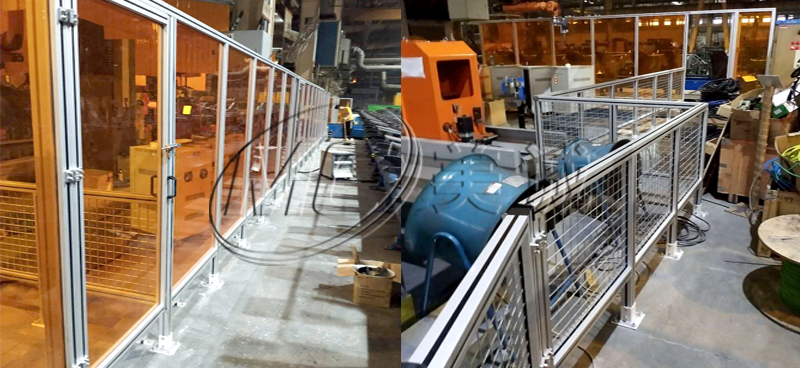 在車間設(shè)備防護(hù)工程中,鋁型材機(jī)械防護(hù)欄是比較熱門的一類。大多數(shù)這樣的工程都是用工業(yè)鋁合金型材定制的的