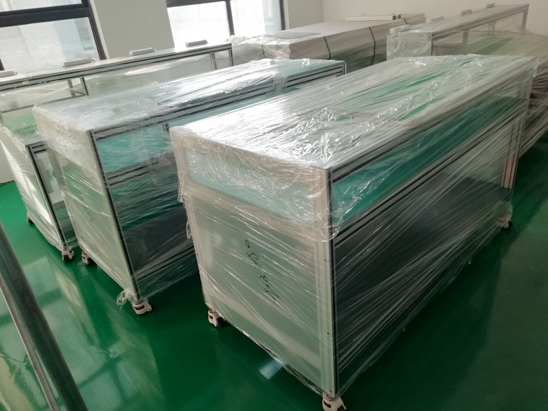 鋁型材工作臺(tái)是指用鋁型材為主要框架的工作臺(tái)。常見(jiàn)的有流水線工作臺(tái)、防靜電工作臺(tái)、車(chē)間工作臺(tái)、實(shí)驗(yàn)室工作臺(tái)、組裝工作臺(tái)、以及其他多工呢工作臺(tái)。鋁型材工作臺(tái)可以增加輸送系統(tǒng)、排煙系統(tǒng)、電力系統(tǒng)等其他功能性系統(tǒng)。