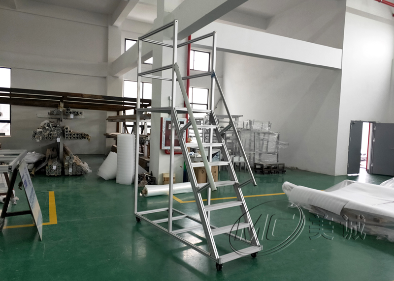 鋁型材登高梯是用工業(yè)鋁型材和鋁型材相關(guān)配件連接起來的用于車間用的登高工具,安無需焊接安裝簡單。登高梯底部按照帶剎車的腳輪可隨處移動(dòng)非常方便。為什么說車間需要用鋁型材登高梯呢?且聽小編分析: