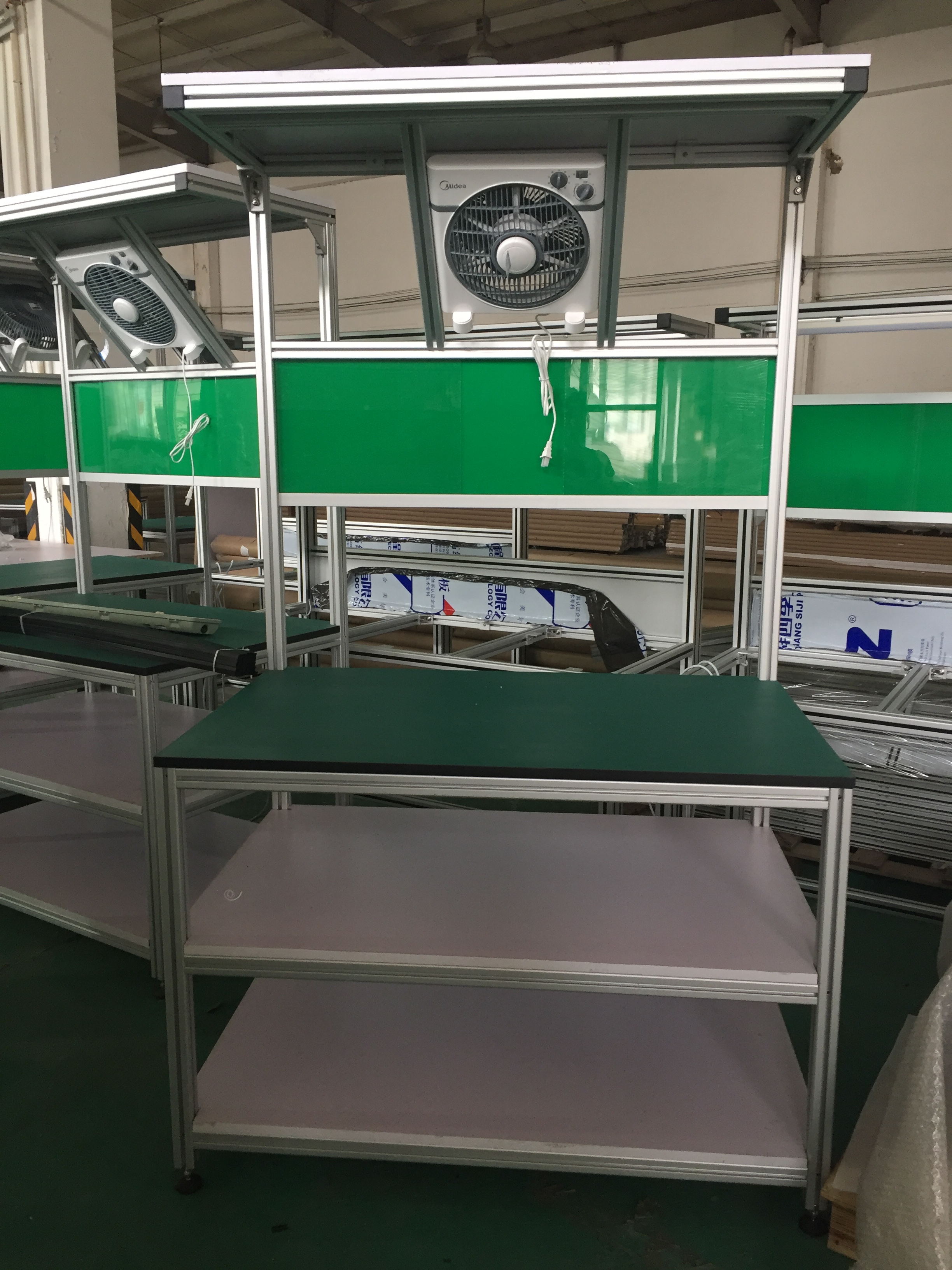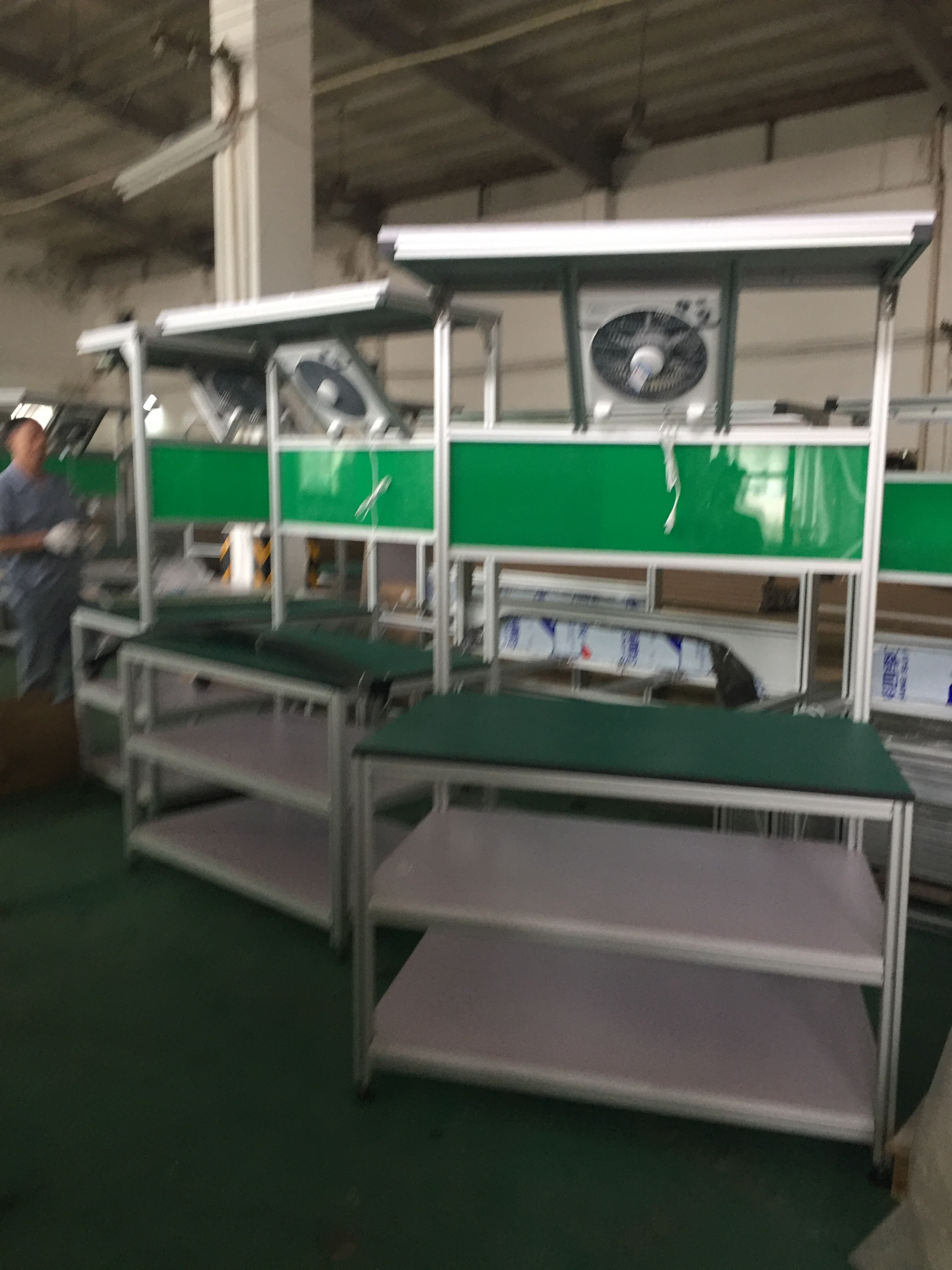 2.        流水線工作臺(tái),其實(shí)就是一切操作臺(tái)等等,既可以用來組裝零件也可以用來流水線作業(yè),不僅僅有單工位、雙工位還有多工位的。