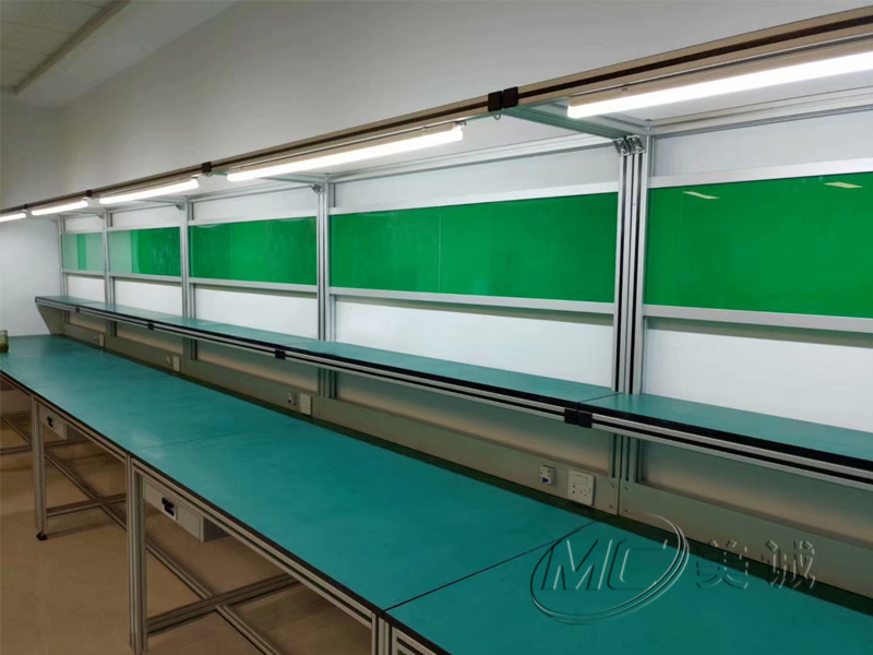 流水線工作臺是汽車制造業(yè)、食品制造業(yè)以及機(jī)械制造業(yè)等行業(yè)常用到的廠區(qū)設(shè)備之一。其優(yōu)點(diǎn)是工位多、功能做、提高生產(chǎn)效率。流水線工作臺的框架就是工業(yè)鋁型材定制的框架,防腐耐磨。