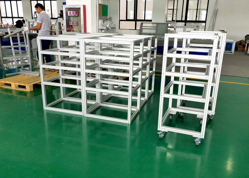 要定做這種轉(zhuǎn)運車要知道所需要定制的尺寸和承載大小,然后找資深的加工實力強的鋁型材廠家出設(shè)計稿,選材,經(jīng)過確認后對所選擇的鋁型材進行加工,然后用鋁型材專用連接件連接組裝好即可。像圖中這種機械零部件運轉(zhuǎn)車,我們選用MC-8-4040鋁型材即可,這一款鋁型材的單位米重在1.4kg每米,屬于大眾型鋁材,一般的鋁型材框架都會用到。
