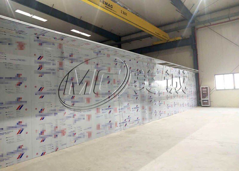 如圖,這是一家企業(yè)的背景墻,整個車間都是選擇鋁合金型材和鋁塑板組裝的,包含背景墻。鋁合金背景墻的主要架構(gòu)是用4545鋁型材和4590鋁型材組裝連接的,而板材部分則是選擇的鋁塑板。這面背景墻的整體框架包含板材部分都是用鋁型材專用配件連接組裝而成,它對比實(shí)體鋼筋混泥土乳膠漆的墻面優(yōu)勢主要體現(xiàn)在以下幾點(diǎn):
