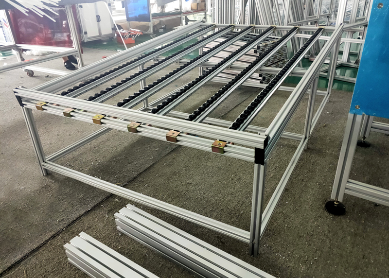 這個(gè)傳送架用的鋁型材是大多數(shù)鋁框架熱門選材之一的4040鋁型材,因此它所有的連接處選擇的鋁型材配件都是40系列的連接件。連接安裝一套流利條貨架其實(shí)并不復(fù)雜就是如上述的這樣簡單。南京美誠鋁業(yè)是一家擁有12年研發(fā)生產(chǎn)加工歷史的鋁型材廠家,在技術(shù)研發(fā)、開模生產(chǎn)以及加工定制和安裝等模塊都有著非常好的經(jīng)驗(yàn)和實(shí)力。
