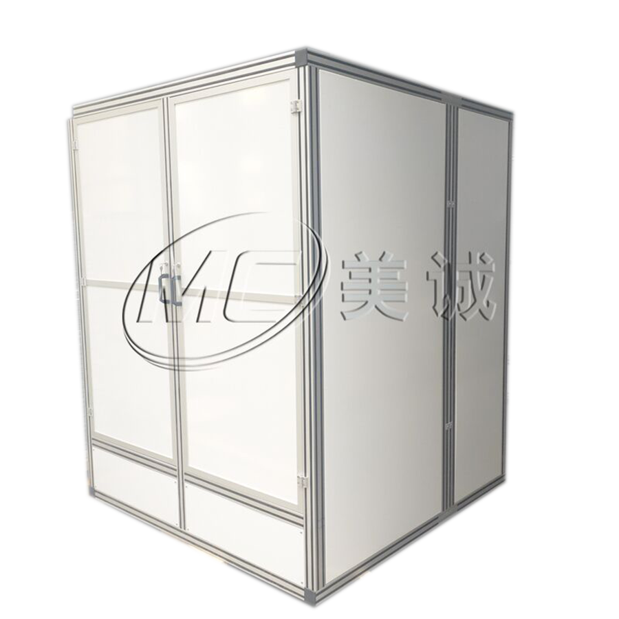 工業(yè)鋁型材在車(chē)間的應(yīng)用絕不僅僅是一些設(shè)備機(jī)罩以及支架方面的使用,看下圖這樣的既可以是設(shè)備的機(jī)柜也可以理解成一個(gè)小型的操作室。范圍往大了說(shuō)也可以用工業(yè)鋁材定做成隔斷或者辦公室。