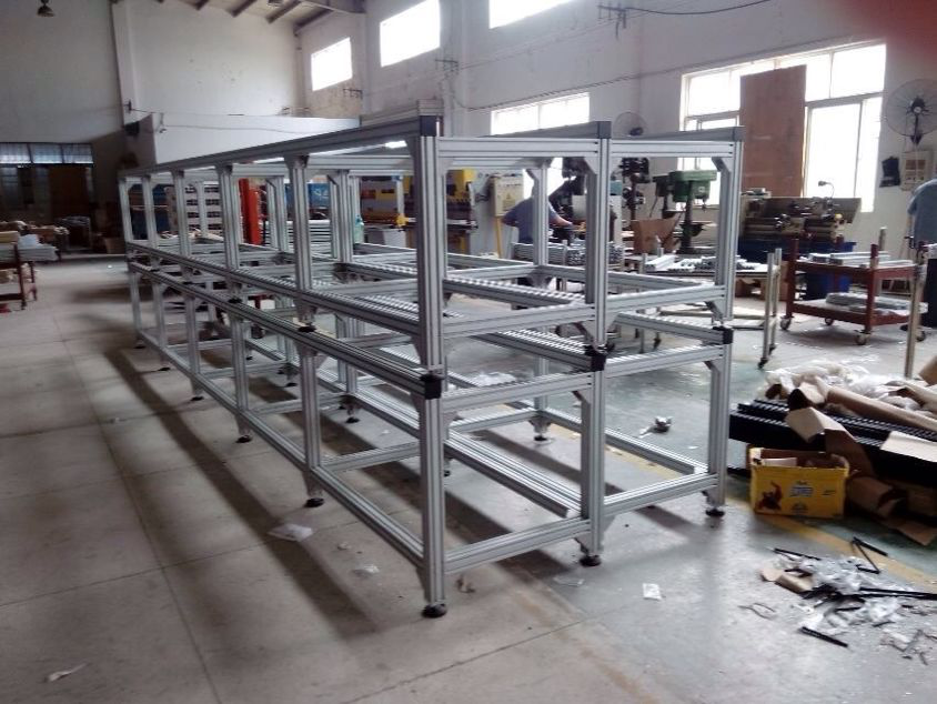 現(xiàn)在工業(yè)鋁型材的市場里,6063合金牌號的鋁型材用途最為廣泛,通常是用鋁錠熱熔后,經(jīng)過模具擠壓,從而得到不用截面形狀的鋁型材,鋁合金快速組裝框架的方法有很多種,像外部連接,打孔連接、螺栓螺母連接以及內(nèi)部鏈接等,根據(jù)客戶所需的實物,按照尺寸切割好,再搭配配套的零件根據(jù)圖紙安裝就可以了。