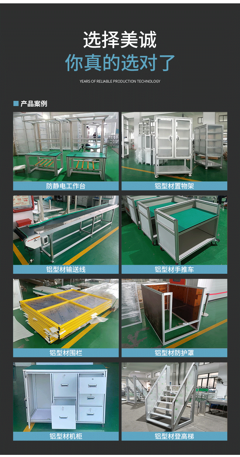 廣泛應(yīng)用于自動化行業(yè)、汽車制造行業(yè)、電子行業(yè)及潔凈工程和高??蒲械阮I(lǐng)域,配套專用螺栓螺母、強力角件以及相關(guān)專用連接件進行組裝成品。